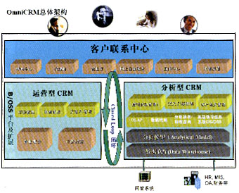 經(jīng)營分析型CRM: OmniVision是OmniCRM方案中經(jīng)營分析型CRM的核心,它采用數(shù)據(jù)倉庫、ETL、OLAP分析、靈活報(bào)表展現(xiàn)及數(shù)據(jù)挖掘等技術(shù),結(jié)合電信業(yè)務(wù)的深厚經(jīng)驗(yàn),進(jìn)行用戶分析、業(yè)務(wù)分析、收益分析、大客戶分析、營銷分析、競爭分析、服務(wù)質(zhì)量分析等主題分析。 客戶聯(lián)系中心: OmniContactCenter是OmniCRM方案中的客戶聯(lián)系中心,包括多媒體呼叫中心、網(wǎng)上用戶自服務(wù)系統(tǒng)(網(wǎng)上營業(yè)廳)、直郵傳真處理中心等。所有的市場活動(dòng)都是由客戶聯(lián)系中心傳遞給客戶的,所有的客戶反饋和請求都是由這里反饋給分析系統(tǒng)的。 大客戶管理:OmniVIP OmniVIP是亞信公司結(jié)合深厚的行業(yè)知識,專門針對集團(tuán)大客戶、商業(yè)大客戶、潛在大客戶等各類電信大客戶,從分析和運(yùn)營兩個(gè)方面為各電信公司提供的完整而領(lǐng)先的大客戶管理方案,它能夠?yàn)檫\(yùn)營商提供現(xiàn)有及潛在大客戶的全方位視圖,包括客戶行為、業(yè)務(wù)情況、商業(yè)獲利率、競爭情況等,挖掘潛在商機(jī),使利潤最大化;能夠使運(yùn)營商有效地降低成本;能夠使運(yùn)營商為大客戶提供真正的個(gè)性化服務(wù);能夠使運(yùn)營商預(yù)測、吸引并發(fā)展?jié)撛诘拇罂蛻簦荒軌蚴惯\(yùn)營商有效地管理大客戶服務(wù)人員,提高客戶的滿意度和忠誠度;能夠通過OmniContactCenter、代理商、營業(yè)廳、SMS、Email等全面的渠道管理,幫助電信運(yùn)營商對大客戶進(jìn)行“全員、全程、全方位”服務(wù),從而全方位地為大客戶提供最完善優(yōu)質(zhì)的服務(wù)。 市場管理:OmniMarketing OmniMarketing根據(jù)分析系統(tǒng)得出的結(jié)論,產(chǎn)生相應(yīng)的市場活動(dòng)發(fā)送給運(yùn)營型CRM部分執(zhí)行,同時(shí)將執(zhí)行結(jié)果和反饋收集回來進(jìn)行比較、評價(jià)和進(jìn)一步的分析,以期設(shè)計(jì)出更合理的資費(fèi)和更貼切的業(yè)務(wù)給用戶。 銷售管理:OmniSFA 隨著競爭的加劇,運(yùn)營商的銷售也將從傳統(tǒng)的柜臺坐等的經(jīng)營模式轉(zhuǎn)變成有針對性的主動(dòng)出擊發(fā)展客戶的模式。銷售管理系統(tǒng)就是提供了針對銷售人員的銷售輔助工具,其中包括任務(wù)分配與下達(dá)、日程安排、客戶資料管理、銷售機(jī)會管理、銷售漏斗、報(bào)價(jià)管理、訂單合同管理、銷售業(yè)績考評和資金評定等模塊。 通過OmniSFA,銷售工作將按照科學(xué)化正規(guī)化流程化的方式來進(jìn)行。 運(yùn)作型和分析型CRM的互動(dòng)循環(huán)