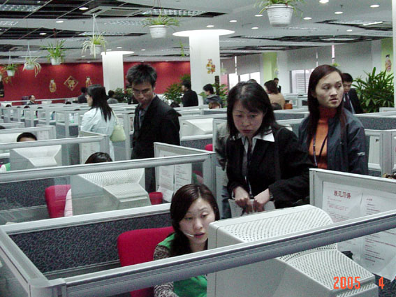 。。2005年4月12日,2005中國(guó)國(guó)際呼叫中心與客戶關(guān)系管理大會(huì)組織了呼叫中心現(xiàn)場(chǎng)參觀,第一參觀路線為世紀(jì)新元和盛大網(wǎng)絡(luò),第二參觀路線為招商銀行信用卡中心(CCCS認(rèn)證五星級(jí)呼叫中心)和平安財(cái)險(xiǎn),以下是相關(guān)圖片報(bào)道: