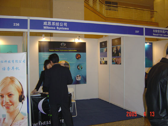 2005年4月13日,2005中國國際呼叫中心與客戶關(guān)系管理大會在上海光大會展中心隆重開幕,以下是展廳參觀相關(guān)圖片報道:
