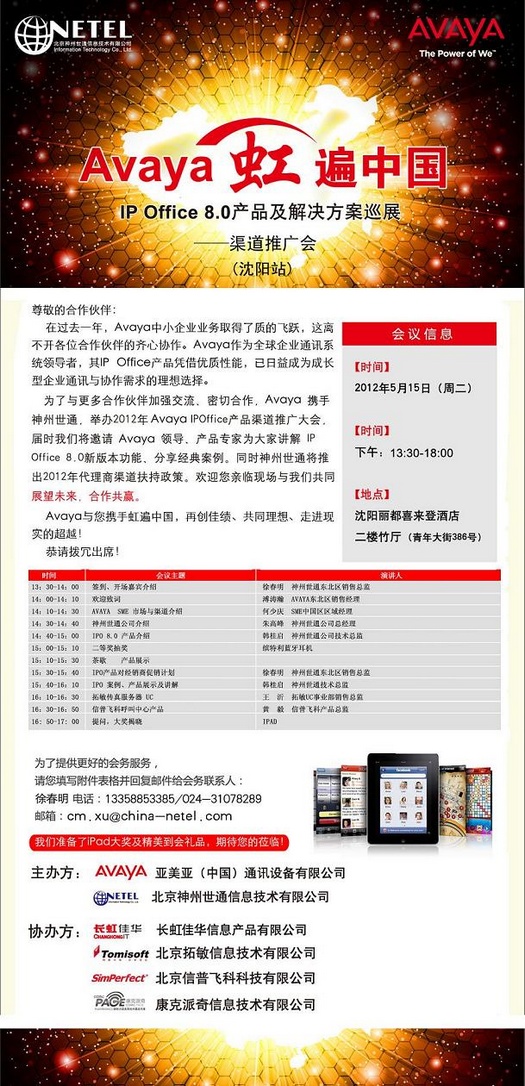 AVAYA IPO 8.0 巡展—渠道推廣會(huì)沈陽(yáng)站 [5月15日]