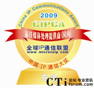 代表國(guó)內(nèi)IP通信領(lǐng)域最高水準(zhǔn)的中國(guó)IP通信大獎(jiǎng)(CIPCA),于2009年9月25日在上海NexCom Expo 下一代網(wǎng)絡(luò)通信展暨CIPCC中國(guó)IP通信大會(huì)上揭曉。深圳市東進(jìn)技術(shù)繼2008年獲得此項(xiàng)殊榮后,憑借無可爭(zhēng)議的票數(shù)優(yōu)勢(shì),蟬聯(lián)“2009中國(guó)IP通信大獎(jiǎng)”,取得“最佳媒體處理提供商(國(guó)內(nèi))”獎(jiǎng)項(xiàng)。
