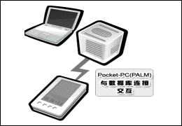 市場(chǎng)和營(yíng)銷人員(促銷員)回到公司后將PDA和服務(wù)器端系統(tǒng)相聯(lián),實(shí)現(xiàn)前端的移動(dòng)應(yīng)用系統(tǒng)和公司內(nèi)部系統(tǒng)的數(shù)據(jù)同步功能。