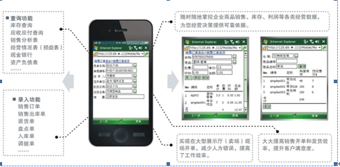應(yīng)時代潮流和中小企業(yè)對移動商務(wù)應(yīng)用的需求,自2010年,任我行軟件公司開始研發(fā)針對中小企業(yè)的移動商務(wù)系統(tǒng),幾經(jīng)探索之后,于2011年推出了穩(wěn)定、安全、應(yīng)用流暢的管家婆手機(jī)版。通過管家婆手機(jī)版,管家婆軟件用戶可以通過終端設(shè)備(手機(jī)、PDA或數(shù)據(jù)采集器)上網(wǎng),訪問管家婆軟件后臺系統(tǒng),隨時隨地處理業(yè)務(wù),查詢各種經(jīng)營數(shù)據(jù);谟脩舨僮髁(xí)慣,管家婆移動商務(wù)分為B/S版和C/S版,其移動系統(tǒng)的應(yīng)用涵蓋了OA、查詢報表、審核、簡單錄入以及快速錄單、掃描錄入等多個方面,所有的數(shù)據(jù)自動與系統(tǒng)實時同步。移動商務(wù)幫助企業(yè)擺脫時間、空間、地點(diǎn)的辦公限制,讓用戶可以隨時隨地靈活處理相關(guān)工作。