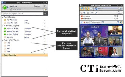 Polycom 視頻會議終端可以看到 OCS 客戶端的在線狀態(tài)并可以通過聯系人列表進行視頻呼叫。