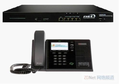 這里的設(shè)備都需要全面支持UC技術(shù)。這里包含了一臺(tái)IP程控交換機(jī)(NET UX2000)和一部IP電話(寶利通CX600)。