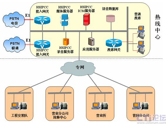 熱線中心設立8個熱線受理座席、1個班長座席、8個備用座席和1個質(zhì)檢座席(均為本地座席);工程安裝隊設立1個遠程座席;營業(yè)分公司搶修中心和營業(yè)所各設立1個遠程座席;管網(wǎng)分公司設立1個遠程座席。