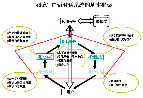 與其他中文自然語言理解系統(tǒng)不同,得意的系統(tǒng)支持的是靈活隨意的口語對(duì)話,并能根據(jù)對(duì)語義的真正理解,采用先進(jìn)的自然語言生成技術(shù),產(chǎn)生自然的應(yīng)答語句。一個(gè)口語對(duì)話系統(tǒng)包括的主要部分有:語義分析器、對(duì)話管理器、應(yīng)答生成器等。得意公司在這幾個(gè)方面都做得很好,軟件開發(fā)工具包和開發(fā)環(huán)境完備,對(duì)技術(shù)開發(fā)人員要求不高,利用該開發(fā)工具,可以大大縮短開發(fā)周期,快速并有效地開發(fā)出實(shí)用的口語對(duì)話系統(tǒng)。國內(nèi)大部分的技術(shù)開發(fā)商和SP都能輕松應(yīng)用此開發(fā)工具開發(fā)自己的智能服務(wù)系統(tǒng),有關(guān)的修改、補(bǔ)充和維護(hù)工作也很方便,一般通過修改配置文件就可以達(dá)到對(duì)系統(tǒng)進(jìn)行升級(jí)的目的。