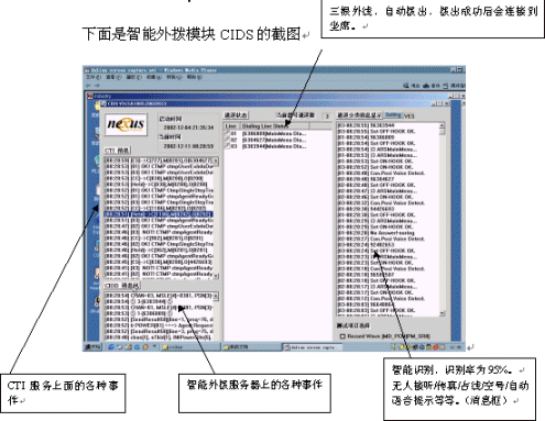 奈科科技的外撥模塊CIDS可以準(zhǔn)確區(qū)分各種呼叫應(yīng)答類型,從而最大限度地實(shí)現(xiàn)呼叫過程的自動(dòng)化識(shí)別,它可以處理響鈴無應(yīng)答、忙音、攔截(如電話中斷,撥打了錯(cuò)誤號(hào)碼,長途電話線路繁忙等)、特殊信息音、自動(dòng)語音(語音信箱或自動(dòng)應(yīng)答系統(tǒng))調(diào)制解調(diào)器和傳真以及真實(shí)的人類語音,識(shí)別率可以達(dá)到95%以上?梢酝ㄟ^預(yù)測座席的通話時(shí)間長短和發(fā)信結(jié)果來撥打電話,從而能夠以最少的座席實(shí)現(xiàn)最多的呼出。同時(shí),支持呼叫混用,可以不固定座席的席位,根據(jù)情況支持呼入、呼出、混用模式,從而能夠以最少的座席數(shù)支持最大限度的呼入/呼出業(yè)務(wù)。業(yè)務(wù)代表在20%~45% 的時(shí)間內(nèi)接觸的都是應(yīng)答機(jī)。對于一個(gè)每天處理2千個(gè)呼叫的呼叫中心來說,自動(dòng)屏蔽應(yīng)答機(jī)帶來的好處相當(dāng)可觀。