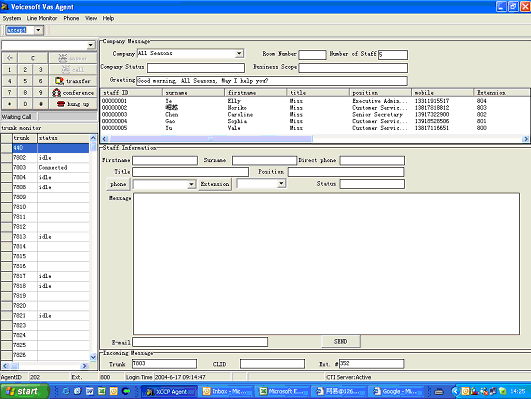 Voicesoft(聲軟)公司的VAS (Virtual Attend System) 虛擬前臺(tái)系統(tǒng)是面向虛擬辦公室服務(wù)商的通信解決方案,主要是為虛擬辦公室提供虛擬前臺(tái)服務(wù)功能。一般情況下,虛擬辦公系統(tǒng)服務(wù)商需要配備一定數(shù)量的前臺(tái)工作人員為眾多入住商戶提供個(gè)性化的前臺(tái)服務(wù),工作人員利用VAS系統(tǒng)