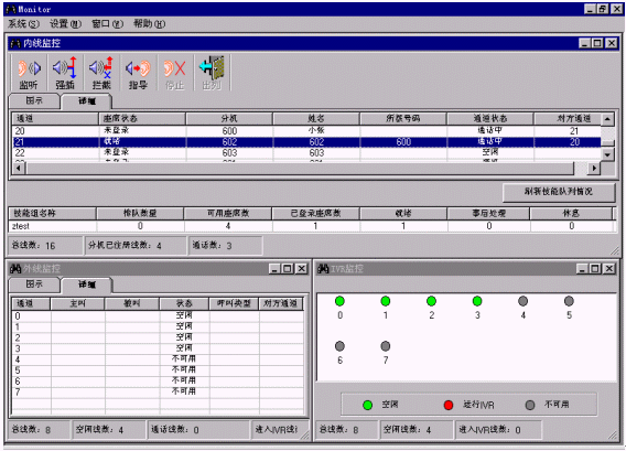 ·監(jiān)聽:班長可監(jiān)聽座席與客戶之間的通話,而座席與客戶雙方都不會察覺。