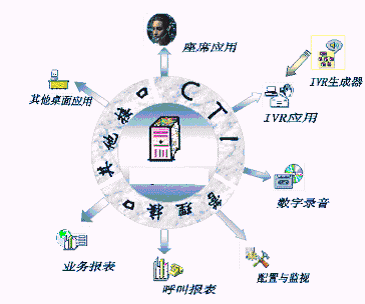 投訴建議,錄音留言,語音信箱管理,轉(zhuǎn)有關(guān)部門辦公電話,自動(dòng)語音服務(wù),人工座席服務(wù),呼出服務(wù)等為一體的客戶服務(wù)軟硬件平臺(tái),充分整合現(xiàn)有資源,建立起對(duì)現(xiàn)有計(jì)算機(jī)技術(shù)支持系統(tǒng)等業(yè)務(wù)系統(tǒng)的(如ERP系統(tǒng),售后服務(wù)系統(tǒng)等)數(shù)據(jù)加工、分析、再應(yīng)用的汽車制造企業(yè)具有基本CRM功能的呼叫中心系統(tǒng)/客戶服務(wù)中心的一體化軟硬件CTI平臺(tái)。