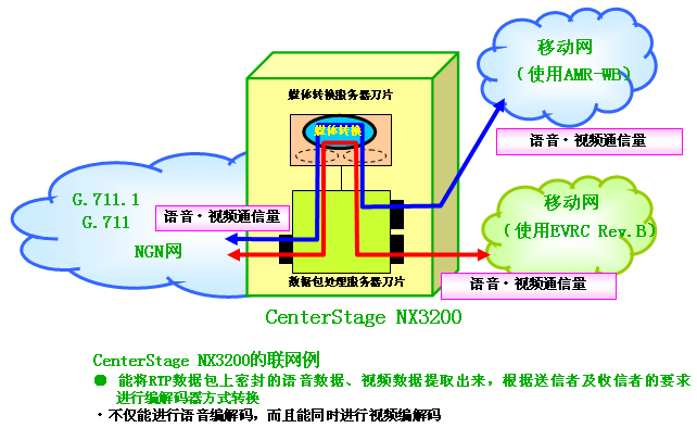 如上所述,為了盡快支持寬帶編解碼器,沖電氣此次新追加功能的「NX3200」,創(chuàng)行業(yè)之首內(nèi)置了ITU-T的國(guó)際標(biāo)準(zhǔn)G.711.1編解碼器之外,還內(nèi)置了移動(dòng)網(wǎng)的下一代編解碼器AMR-WB、 EVRC Rev.B,支持這3種寬帶編解碼器。從而,能實(shí)現(xiàn)以往的編解碼器方式轉(zhuǎn)換功能之外,還能讓運(yùn)用移動(dòng)網(wǎng)、固定網(wǎng)的各種語(yǔ)音編解碼器及視頻編解碼器之間,同時(shí)進(jìn)行大容量通信。作為在推進(jìn)無(wú)所不在網(wǎng)絡(luò)服務(wù)進(jìn)程中必不可少的,能實(shí)現(xiàn)NGN相互聯(lián)網(wǎng)的裝置,今后將越來(lái)越拓展使用范圍。