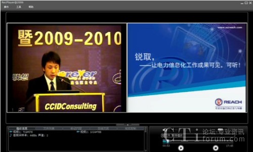本次論壇分為電力企業(yè)信息化高峰論壇、電力企業(yè)“十二五”信息化藍(lán)圖展望、電力信息化標(biāo)桿研究及評選結(jié)果發(fā)布、研討國際電力信息化標(biāo)桿發(fā)展方向、研討“智能”落地打造中國智能特色五大議題。深圳銳取受主辦方委托為論壇提供全程錄播服務(wù)。相比傳統(tǒng)攝像機(jī)記錄會(huì)議的方式,銳取多媒體錄播系統(tǒng)實(shí)現(xiàn)了會(huì)議現(xiàn)場視頻與講演者PPT同步完整記錄,新穎的記錄方式受到了主辦單位和與會(huì)者的好評。