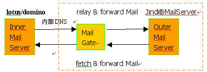 這種方案在有一定規(guī)模的企業(yè)比較典型,內部網(wǎng)為Lotus/domino或Exchange的群件系統(tǒng),為內部用戶提供smtp, pop3