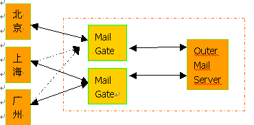 用于員工之間互發(fā)郵件;外部網(wǎng)有一套郵件系統(tǒng),掛在企業(yè)網(wǎng)站上,用于對外的溝通和交流。有些上一定規(guī)模的企業(yè)還有自己的專網(wǎng),與分公司和各地辦事處連接。這樣,就造成了一個企業(yè)多套郵件系統(tǒng)并存的現(xiàn)象。
