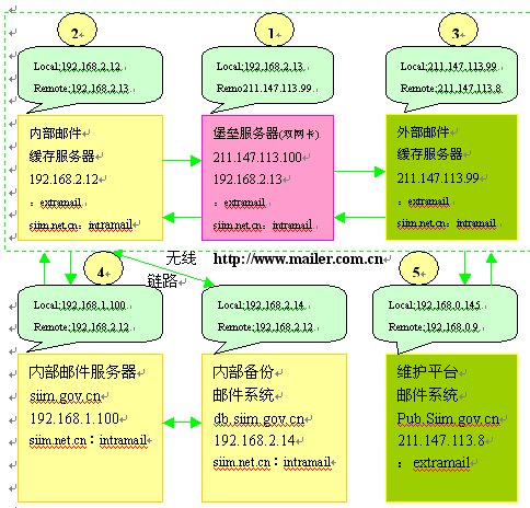 1.內外網(wǎng)物理隔離郵件路由方案示意圖