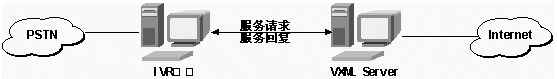 在這里VXML是指Voice XML的服務器,它負責接收IVR轉發(fā)過來的用戶按鍵請求,并返回信息數(shù)據(jù)和操作指令。