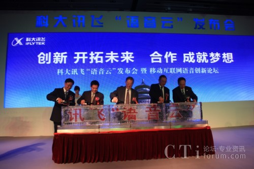 CTI論壇(ctiforum)10月29日消息(記者 潘婷婷): 2010年10月28日,“科大訊飛‘語音云’發(fā)布會(huì)暨移動(dòng)互聯(lián)網(wǎng)語音創(chuàng)新論壇”在北京香格里拉飯店隆重舉行。科大訊飛作為中國語音產(chǎn)業(yè)領(lǐng)導(dǎo)者,在業(yè)界率先推出“訊飛語音云”,對(duì)于促進(jìn)國家新近確定的七大戰(zhàn)略新興產(chǎn)業(yè)之一的“新一代信息技術(shù)”發(fā)展具有重大意義,將推動(dòng)移動(dòng)互聯(lián)網(wǎng)邁入語音時(shí)代,創(chuàng)新無限豐富的應(yīng)用、創(chuàng)造廣闊的市場(chǎng)藍(lán)海。因此,此次發(fā)布會(huì)得到了各界的高度關(guān)注,各相關(guān)政府部門領(lǐng)導(dǎo),聯(lián)想、騰訊、愛國者、優(yōu)視科技、播思通訊等各行業(yè)及移動(dòng)互聯(lián)網(wǎng)領(lǐng)軍企業(yè)的代表,媒體界朋友,匯聚一堂、共襄盛舉,并就移動(dòng)互聯(lián)網(wǎng)與語音產(chǎn)業(yè)的相互融合、創(chuàng)新發(fā)展、合力共贏進(jìn)行了深入熱烈的探討。