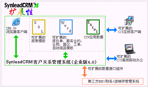 在中國CRM品牌軟件中,SynleadCRM可能是唯一的、最好的、支持"B/S+C/S雙架構(gòu)"和"在線辦公+離線辦公"應(yīng)用的產(chǎn)品,SynleadCRM企業(yè)版4.0使得用戶能夠按照最方便自己的方式擴(kuò)展應(yīng)用。