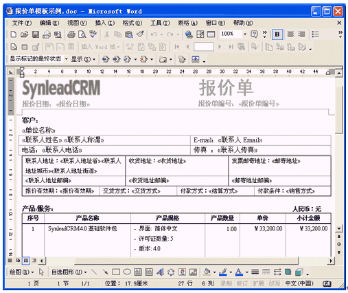 SynleadCRM企業(yè)版4.0很好地滿足了銷售自動化管理、服務(wù)自動化管理的上述需求,提供了開放的客戶化Word模板,使得用戶企業(yè)能夠根據(jù)實(shí)際情況不斷擴(kuò)展該應(yīng)用?蛻艋0逯苯釉赪ord中編輯,可直觀、方便地插入合并域字段或代碼,只要對Word稍加了解就可勝任模板維護(hù)工作。