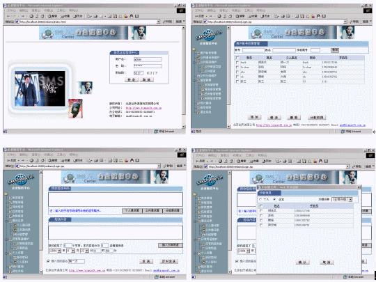 企業(yè)里的每個(gè)用戶要實(shí)現(xiàn)短信發(fā)送,僅需一臺(tái)電腦,然后利用瀏覽器就可以實(shí)現(xiàn)分組發(fā)送(如:會(huì)議通知、緊急通知)、定時(shí)群發(fā)(如:提醒短信、恭賀短信、祝福短信)、以及接收工作情況匯報(bào)短信等,系統(tǒng)提供通訊薄管理,可編輯常用短語。服務(wù)器端支持多個(gè)GSM設(shè)備群發(fā),滿足不同發(fā)送短信量的需要?煨┫螺d系統(tǒng)的動(dòng)畫演示,新增功能多多。!