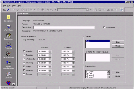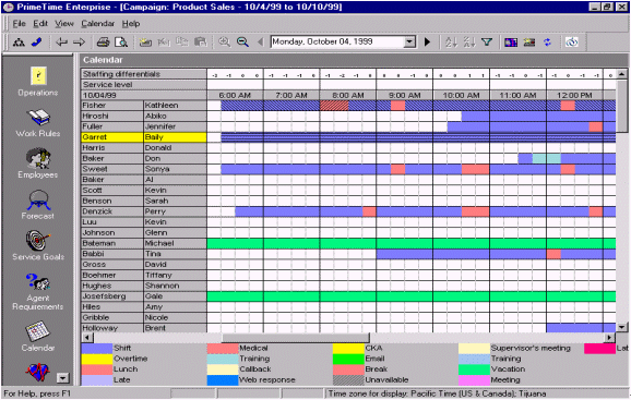 絕大多數(shù)的WFMS可以通過(guò)歷史數(shù)據(jù)和人員情況自動(dòng)生成排班表。而且它也只是簡(jiǎn)單的根據(jù)呼叫中心的運(yùn)營(yíng)時(shí)間來(lái)排班。舉個(gè)例子,某個(gè)呼叫中心在排班是有兩個(gè)班,一個(gè)工作時(shí)間是早7點(diǎn)到下午3點(diǎn),另一個(gè)是早九點(diǎn)到晚五點(diǎn),這就意味著不僅要安排早、晚休息,還要顧及到午休的時(shí)間。休息的安排要保證能夠在電話(huà)的持續(xù)中也能有持續(xù)的人員保證電話(huà)量。在這個(gè)自動(dòng)化軟件的之中還有一個(gè)因素要能夠?qū)崿F(xiàn)自動(dòng)化--人的因素。例如:Mary和Jane想同時(shí)去吃午餐,然而自動(dòng)化的排班表并不是這樣的。然而主管根據(jù)當(dāng)時(shí)的話(huà)務(wù)量情況和工作狀況以及工作規(guī)范批準(zhǔn)了Mary和Jane共享午餐的要求,而WFMS就要能夠處理這樣很有可能發(fā)生,而且是合理的情況。排班表的更改應(yīng)該就是簡(jiǎn)單的拖拽圖標(biāo)就應(yīng)該能夠?qū)崿F(xiàn)的功能,并且能夠在這種更改會(huì)對(duì)預(yù)測(cè)的話(huà)務(wù)量差生不好影響時(shí),拒絕這種拖拽行為。