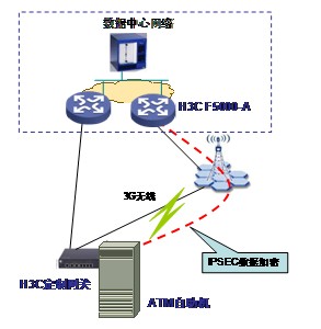 上海電信根據(jù)交通銀行的實際情況,提出了“線路+設(shè)備+業(yè)務(wù)”一體化的融合解決方案,采用H3C提供的商務(wù)領(lǐng)航定制網(wǎng)關(guān)和IPSec VPN解決方案構(gòu)建。 通過H3C Navigator B1-2+定制網(wǎng)關(guān),將ATM自助機通過有線主鏈路與總部數(shù)據(jù)中心安全互聯(lián),實現(xiàn)關(guān)鍵數(shù)據(jù)的安全傳輸,同時借由定制網(wǎng)關(guān)的3G接口,實現(xiàn)3G鏈路和有線主鏈路的相互備份。該方案保障了ATM自助機數(shù)據(jù)的安全傳輸,有效降低了交通銀行的運營成本,提升了效率。