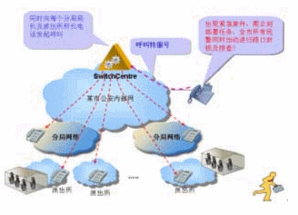 在公安系統(tǒng)中,有時候出現(xiàn)緊急案件,需立刻部署任務(wù),例如要求全市所有民警同時出動進(jìn)行路口封鎖及排查!如果一個一個打電話通知將會很麻煩,如果有電話廣播功能將是很方便的,可以同時接通很多電話,將命令廣播下去。華為3Com公司V2oIP系統(tǒng)在強(qiáng)大的GK支持下,只要事先定義了特服號對應(yīng)的電話號碼群組,撥通特服號就能實現(xiàn)電話廣播。