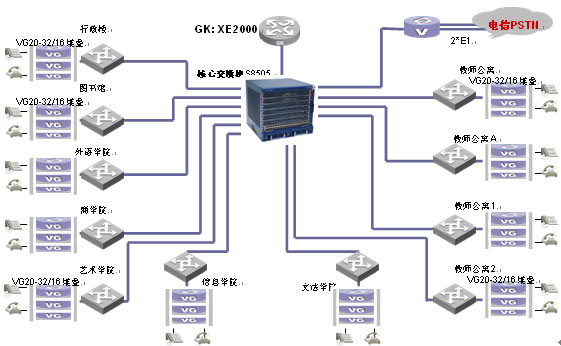 在該方案中, Voice和Video作為基礎業(yè)務和數(shù)據(jù)完全融合,豐富了學校教學,辦公的模式,提供了多種溝通方式。IP語音在與PSTN完美融合的同時向VOIP漸進,用戶在使用低成本接入手段的同時可以體驗各種先進IP融合業(yè)務,進而使學校的辦公效率得到極大提高。另一方面,該方案提供用戶接入、呼叫控制、資源管理、網(wǎng)絡管理等功能的設備實現(xiàn)完美融合;同時計算機和電話系統(tǒng)集成接口讓業(yè)務融合成為現(xiàn)實。