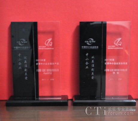 作為國(guó)內(nèi)首家SaaS廠商,八百客積極推動(dòng)云計(jì)算在中小企業(yè)中的宣傳與運(yùn)用。2006年,八百客在國(guó)內(nèi)率先推出管理自動(dòng)化開(kāi)發(fā)平臺(tái)800APP, 它擴(kuò)展了按需服務(wù),并實(shí)現(xiàn)了客戶(hù)可根據(jù)需要自定制應(yīng)用程序,成為了改變應(yīng)用程序開(kāi)發(fā)的一個(gè)新途徑。為表彰八百客在中小企業(yè)信息化中做出的杰出貢獻(xiàn),本次大會(huì)特別為八百客頒發(fā)了“2011年度優(yōu)秀中小企業(yè)服務(wù)產(chǎn)品大獎(jiǎng)”,此外還授予八百客總經(jīng)理李智 “2011年度優(yōu)秀中小企業(yè)服務(wù)明星大獎(jiǎng)”。