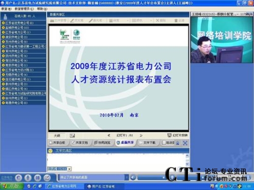 CTI論壇(ctiforum)2月24日消息(記者 張塵):2月9日上午,江蘇省電力公司通過視維虛擬教室召開全省人才資源統(tǒng)計(jì)報(bào)表布置會。來自全省電力系統(tǒng)65處市、縣負(fù)責(zé)人才資源統(tǒng)計(jì)工作的同志參加這次培訓(xùn),通過視維虛擬教室不僅避免了陰雨天氣和交通不便等諸多困難,還擴(kuò)大了培訓(xùn)人員的范圍。