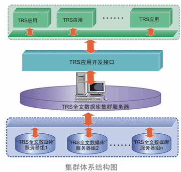TRS全文數(shù)據(jù)集群服務器,是架構在多個物理TRS全文數(shù)據(jù)庫服務器之上的分布式管理系統(tǒng),它支持數(shù)據(jù)分布及負載均衡兩種方式,并支持兩種方式的組合運用,滿足用戶海量數(shù)據(jù)和高并發(fā)環(huán)境下的分布式檢索、檢索性能和可靠性要求。