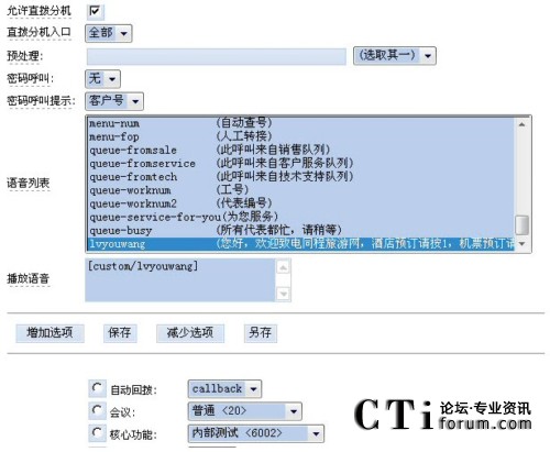 根據(jù)需要,用戶可以自己設定不同的語音以及不同的路由選擇,客戶呼入后就可以轉(zhuǎn)移到不同的服務組甚至不同的企業(yè)。