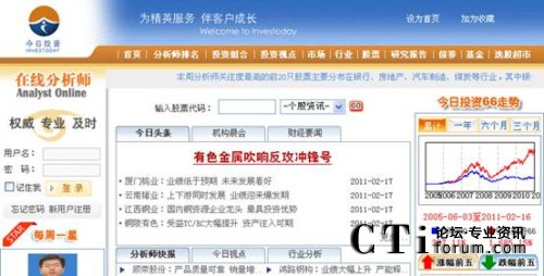 深圳今日投資財(cái)經(jīng)資訊有限公司是一家致力于為投資者提供專業(yè)證券數(shù)據(jù)統(tǒng)計(jì)和個(gè)性化證券資訊的服務(wù)提供商。今日投資按照國際標(biāo)準(zhǔn)對70余家券商研究所,1800名一線分析師的研究成果進(jìn)行深入加工和數(shù)據(jù)提煉,經(jīng)過多年的積累,建立了國內(nèi)最早、最全、最專業(yè)的證券投資分析數(shù)據(jù)庫,并充分借鑒國內(nèi)外先進(jìn)的投資方法,獨(dú)創(chuàng)出三眼投資統(tǒng)計(jì)分析法,分別從基本面、技術(shù)面、機(jī)構(gòu)認(rèn)同度三個(gè)方面,對個(gè)股、行業(yè)、市場進(jìn)行各種綜合數(shù)據(jù)統(tǒng)計(jì)和研究分析,依托強(qiáng)大的網(wǎng)絡(luò)資源和合作渠道,通過互聯(lián)網(wǎng)、移動(dòng)互聯(lián)網(wǎng)、手機(jī)增值業(yè)務(wù)、雜志媒體、電視媒體、廣播電臺等渠道為投資者提供各具特色的專業(yè)數(shù)據(jù)統(tǒng)計(jì)和個(gè)性化證券資訊服務(wù)。目前今日投資的產(chǎn)品有:在線分析師、好股網(wǎng)、金融E家、上市公司市值管理系統(tǒng)、手機(jī)炒股系統(tǒng)、行情分析師、基金經(jīng)理調(diào)查、證券導(dǎo)刊等。
