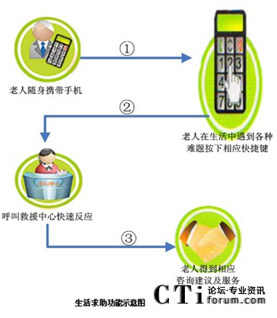 老人使用不記任何電話號(hào),按下紅鍵(盲人按粗糙鍵)就可發(fā)送緊急求救信號(hào);按下綠鍵可以發(fā)送求助信號(hào),求助信息根據(jù)用戶需要在同一時(shí)間發(fā)送到信息服務(wù)中心、社區(qū)網(wǎng)格管理員、老人指定親屬、物業(yè)公司、及有關(guān)部門,可實(shí)現(xiàn)完整信息獲取和快速響應(yīng),啟動(dòng)多方通話進(jìn)行緊急調(diào)度,保障老人的生命財(cái)產(chǎn)安全。