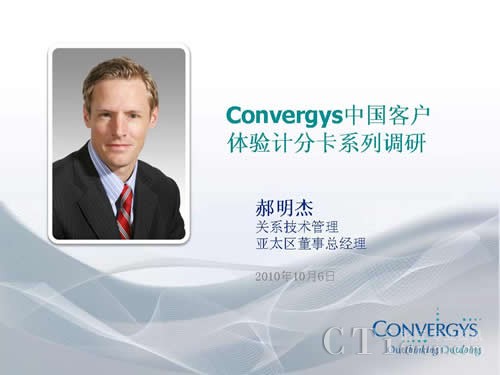 CTI論壇(ctiforum)12月16日消息(記者 楊毅):關(guān)系管理領(lǐng)域的全球領(lǐng)袖Convergys今日在CTI論壇獨家發(fā)布了“傾聽中國客戶的心聲”為主題的“2010年中國客戶體驗計分卡研究”成果視頻,在該視頻中,Convergys 亞太區(qū)董事總經(jīng)理 Benjamin Hart-郝明杰以實際、具體的數(shù)字和圖表向大家進行全面的視頻展示。