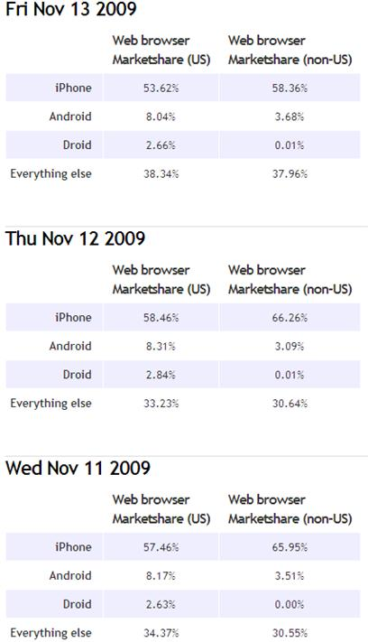 摩托羅拉Droid流量達(dá)Android四分之一