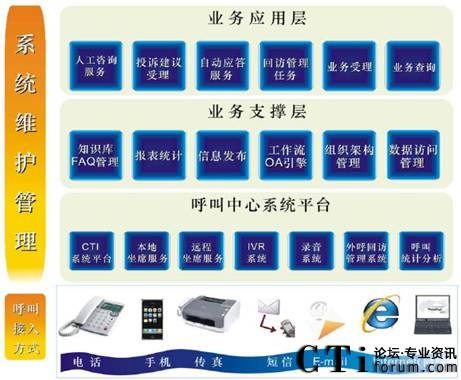 系統(tǒng)通過(guò)人工坐席、自助語(yǔ)音服務(wù)、電子郵件、傳真、即時(shí)聊天工具等方式,受理客戶所申辦的快遞業(yè)務(wù),生成派單并轉(zhuǎn)發(fā)給相應(yīng)部門(mén)進(jìn)行處理。待處理結(jié)果通過(guò)網(wǎng)絡(luò)返回到企業(yè)呼叫中心后,客服人員以電話、傳真、短信息、電子郵件等方式回復(fù)客戶?蛻粢部呻S時(shí)通過(guò)本系統(tǒng)了解所申辦業(yè)務(wù)現(xiàn)處于哪一環(huán)節(jié)及哪一部門(mén)所處理。系統(tǒng)的來(lái)電彈跳功能可以使客服人員第一時(shí)間獲知來(lái)電者的身份背景資料,迅速了解其歷史消費(fèi)信息、詳細(xì)地址等等資料。