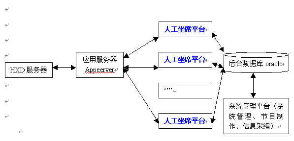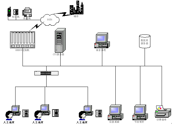 1) 數(shù)據(jù)庫(kù)系統(tǒng): 存放各類待查信息數(shù)據(jù)、話務(wù)統(tǒng)計(jì)數(shù)據(jù)、話務(wù)員操作明細(xì)數(shù)據(jù)等;