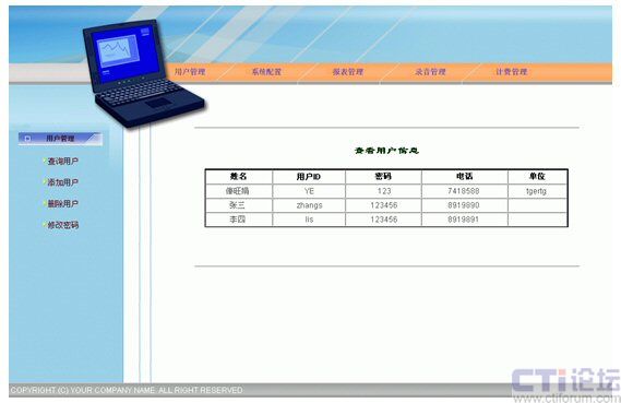 監(jiān)控功能:利用通話錄音、監(jiān)聽等手段,對服務質(zhì)量進行監(jiān)控,實現(xiàn)對服務員的考核。