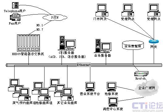 呼叫中心系統(tǒng)的網(wǎng)絡拓撲結(jié)構(gòu)如下圖所示: