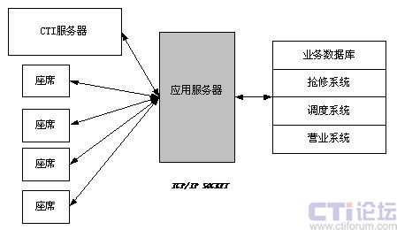 Ο數(shù)據(jù)接口采用三層C/S結(jié)構(gòu),通過構(gòu)建功能強大的應用服務器,把呼叫中心的數(shù)據(jù)流與燃氣公司客戶系統(tǒng)、營業(yè)系統(tǒng)、搶修系統(tǒng)和燃氣調(diào)度系統(tǒng)結(jié)合起來,充分利用了已有系統(tǒng)標準的數(shù)據(jù)接口,實現(xiàn)對后臺數(shù)據(jù)庫的訪問。如圖: