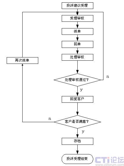 話務員確認投訴和建議后由復審員再次確認分析,然后把用戶的各種意見和合理化建議轉(zhuǎn)相關(guān)部門處理,對呼叫中心本身的投訴則轉(zhuǎn)班長席處理。投訴受理系統(tǒng)可以設置處理部門和處理時限,完成告警輸出和各種統(tǒng)計分析工作,投訴和建議的處理結(jié)果可以根據(jù)需要采用人工、自動、傳真、短信的形式反饋到用戶以提高用戶對服務的滿意度。