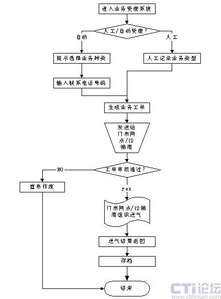 其中,主要功能劃分為:業(yè)務咨詢、信息查詢、投訴與建議、業(yè)務受理、專用瓶管理、回訪/調(diào)查/通知、報警/搶險、門市/經(jīng)銷商管理、客戶信息管理以及統(tǒng)計報表等功能。