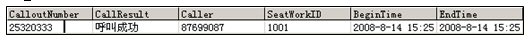 備下次呼叫參考, 同時記錄了工號及呼出主叫, 當該客戶(25320333)呼入時, CTI將自動導航該客戶(被叫號碼)到對應的業(yè)務員工號(1001)和主叫號碼(87699087),