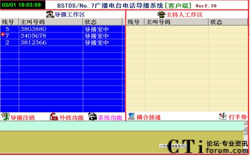 注:進(jìn)入交流區(qū)的電話須導(dǎo)入直播間或退回導(dǎo)播區(qū)的,應(yīng)記住進(jìn)入交流區(qū)時電話提示的其號碼,在電話按鍵上按其號碼后按“#”接入主持人區(qū),按“*”退回導(dǎo)播區(qū)。