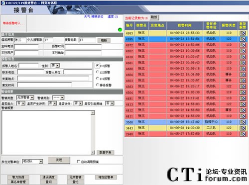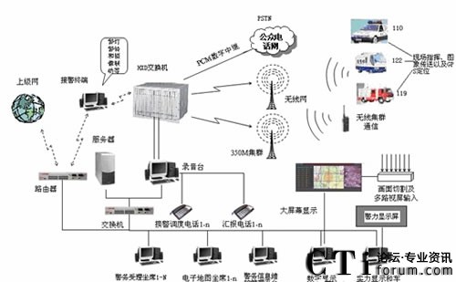 “三臺合一” 接處警系統(tǒng)是一個統(tǒng)一高效、反應(yīng)靈敏,具有極高應(yīng)急能力和科技水平的復(fù)雜系統(tǒng)。這一系統(tǒng)以計(jì)算機(jī)網(wǎng)絡(luò)系統(tǒng)為基礎(chǔ),以有線和無線通信系統(tǒng)為手段,以HXD09接處警系統(tǒng)為核心,集成了地理信息系統(tǒng)(GIS)、衛(wèi)星定位系統(tǒng)(GPS)、大型數(shù)據(jù)庫系統(tǒng)、計(jì)算機(jī)輔助決策系統(tǒng)、大屏幕顯示系統(tǒng)等,體現(xiàn)了高科技與公安業(yè)務(wù)的完美結(jié)合。廣東恒訊達(dá)通訊技術(shù)有限公司的可編程語音交換機(jī)HXD09既能滿足日常信息處理的需要,同時又能在緊急情況下進(jìn)行實(shí)時指揮。