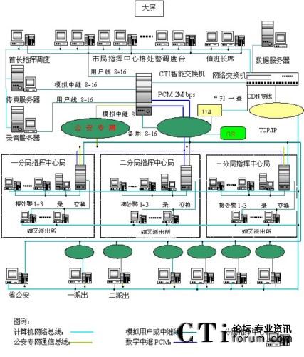 指揮中心對(duì)下屬各派出所、消防大隊(duì)、交警大隊(duì)的指揮調(diào)度分有線(xiàn)、無(wú)線(xiàn)等多種途徑,呼叫方式可以是單呼、組呼、群呼、會(huì)議(含多方通話(huà))等多種方式。發(fā)布指令和信息可通過(guò)計(jì)算機(jī)網(wǎng)絡(luò)發(fā)送到對(duì)方的遠(yuǎn)程計(jì)算機(jī)終端或打印機(jī)上,也可以通過(guò)有線(xiàn)傳真系統(tǒng)發(fā)送到對(duì)方的傳真機(jī)或計(jì)算機(jī)上。