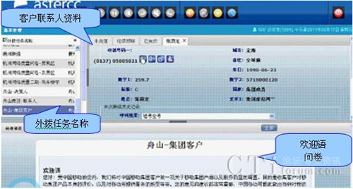 獲取的客戶數(shù)據(jù)便出現(xiàn)在客戶聯(lián)系人資料中,雙擊任一數(shù)據(jù)便可獲取相應(yīng)的客戶具體資料,如所屬的集團(tuán)公司,所在城市,電話號(hào)碼等,是坐席對(duì)客戶資料瞬間掌握方便外呼服務(wù)。