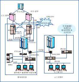 | ACD和G/IW MSC采用華為公司的C&C08_Q智能交換機(jī)做為交換與七號(hào)信令的接入設(shè)備; 短消息調(diào)度中心SMSC,處理短消息的提交、存儲(chǔ)、下發(fā)、定時(shí)重發(fā)等; 呼叫處理服務(wù)器CCS,是人工/自動(dòng)秘書臺(tái)的話務(wù)呼叫控制部件; | ![]() |